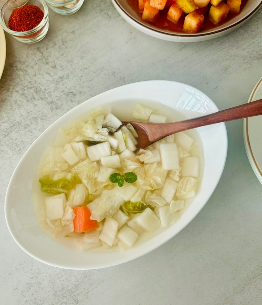 집에서도 맛있는 김치를 먹고 싶다면 나박물김치로 해결하세요!😋시원한 맛과 깔끔한 풍미가 일품인 나박물김치👍식사와 간식으로 다양하게 활용 가능한 건강한 김치🥗