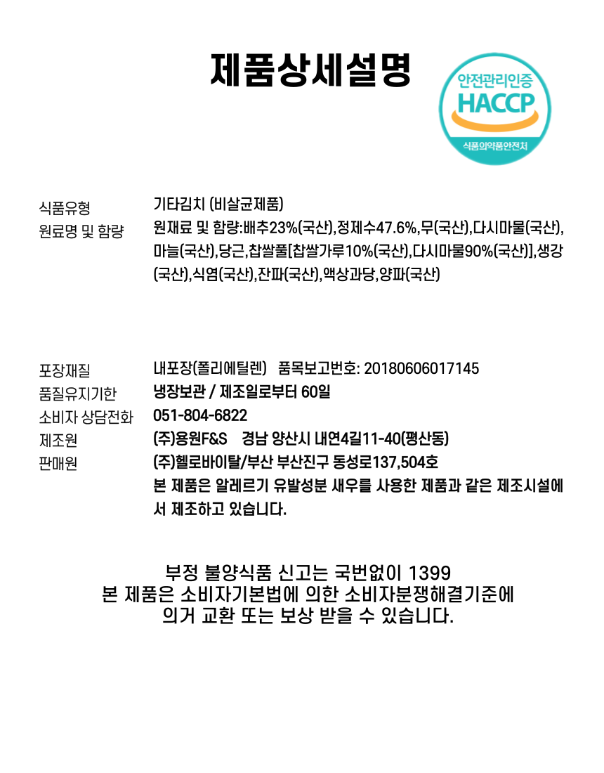 집밥느낌 그대로 정성가득 나박물김치 10KG