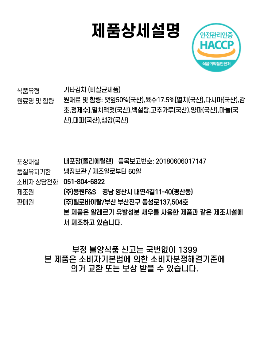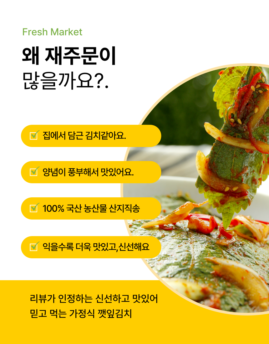 집밥느낌 그대로 정성가득 깻잎김치 2KG
